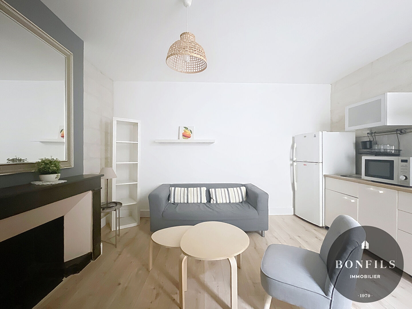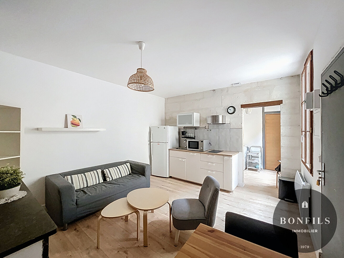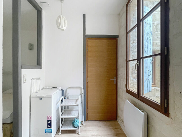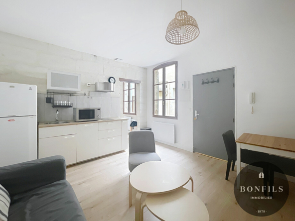 A LOUER AVIGNON (84000) INTRA-MUROS ? Charmant T1 bis meublé situé au 2eme étage d’une copropriété, dans une rue parallèle à la rue de la République. L’appartement se compose d’un séjour avec cuisine ouverte et équipée (comprenant four/micro-ondes, réfrigérateur/congélateur, plaque de cuisson, hotte et lave-vaisselle), d’une pièce couloir avec lave-linge, d’une chambre séparée avec placard et d’une salle d’eau avec WC. Il séduit par son authenticité et le charme de l’ancien avec pierres apparentes, poutres et cheminée en marbre.