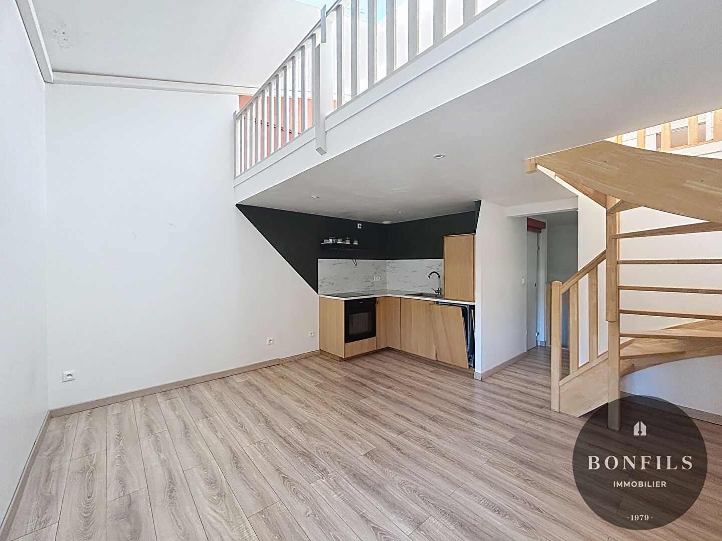 Il se compose d’une belle entrée , à l’étage un séjour donnant sur une cuisine aménagée et équipée ( four, plaques, hotte , lave-vaisselle) , une salle d’eau à l’italienne avec WC , et l’espace nuit en Mezzanine.