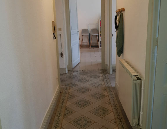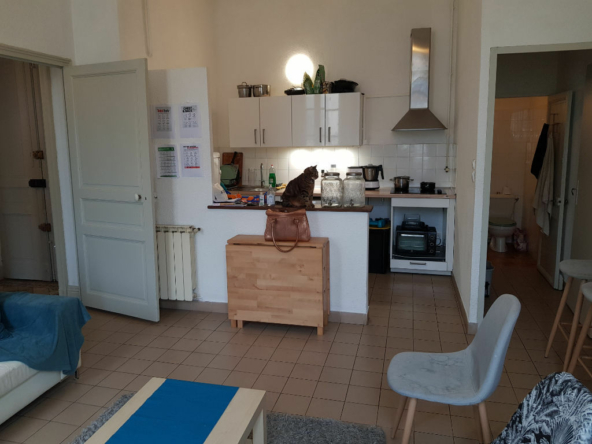 Au 1ème étage d’un immeuble ancien de caractère, spacieux T3 lumineux comprenant une entrée avec un couloir , un grand séjour avec une cuisine aménagée et équipée , 2 belles chambres et un grand dressing . Une salle d’eau avec WC.