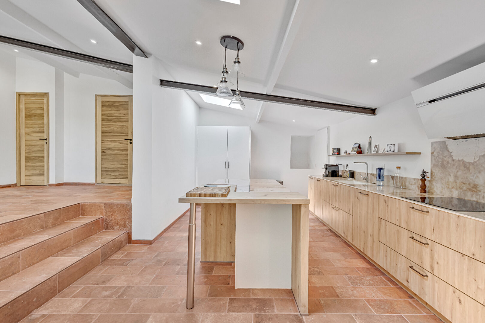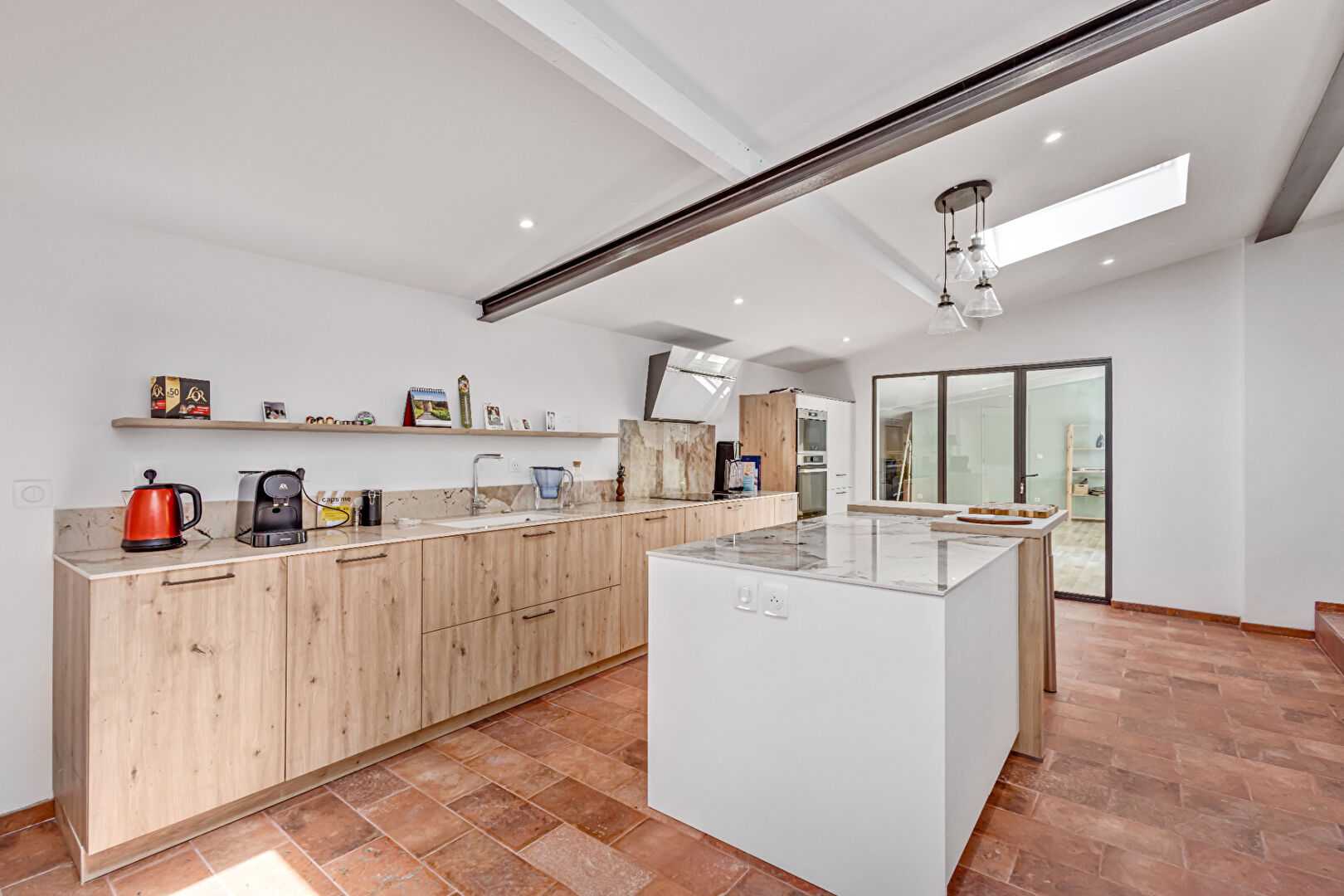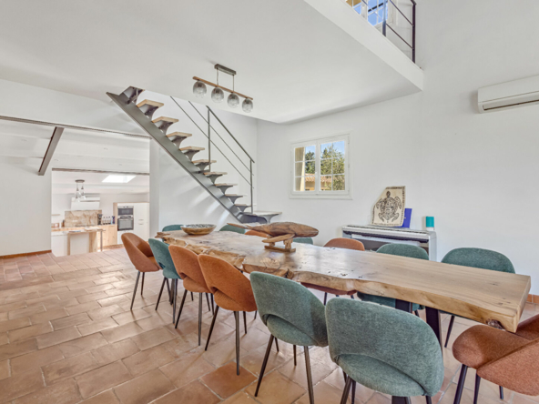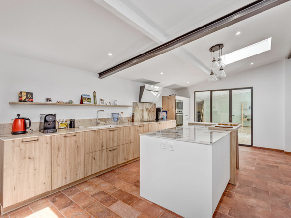 La cuisine s’ouvre sur une spacieuse salle à manger, elle allie modernité et convivialité.