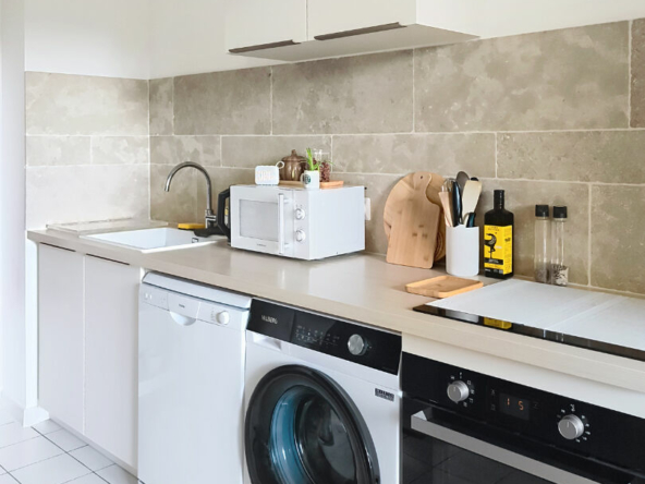Une cuisine prête à l'emploi avec tout l'électroménager nécessaire pour emménager immédiatement.