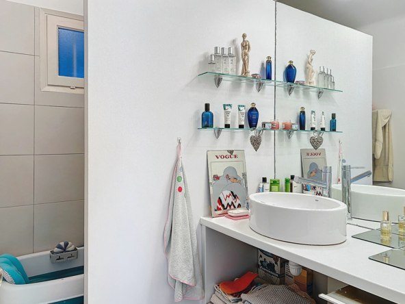 L’appartement est vendu loué 1100 euros par mois charges comprises et bénéficie d’une place de parking privative ainsi que d’une cave en sous-sol.