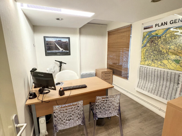 Il est composé d’une salle d’attente, quatre bureaux et une cuisine et un toilette.
