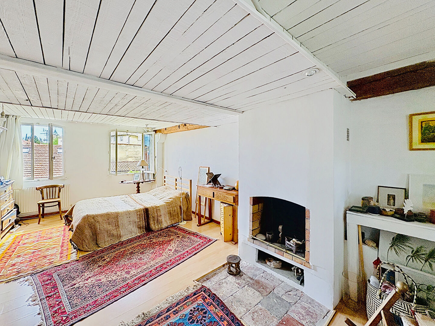 A l’heure actuelle, on recense au rez-de-chaussée deux studios, au premier étage trois belles chambres, une salle d’eau et un WC, au deuxième un séjour cathédrale, une cuisine, une grande chambre et une salle de bain et enfin au troisième étage une mezzanine ouverte sur le séjour, une chambre, une terrasse et un grenier aménageable.