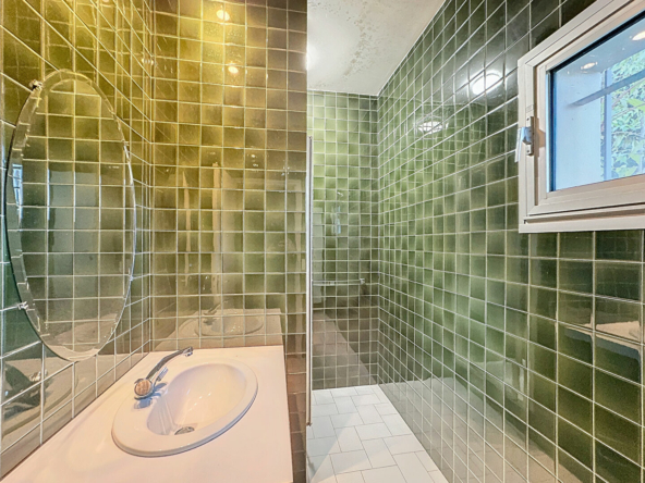 Le terrain de 1 000 m², arboré et sans vis-à-vis, permet de profiter pleinement d’un extérieur paisible et verdoyant, avec une vue dégagée sur les environs.
