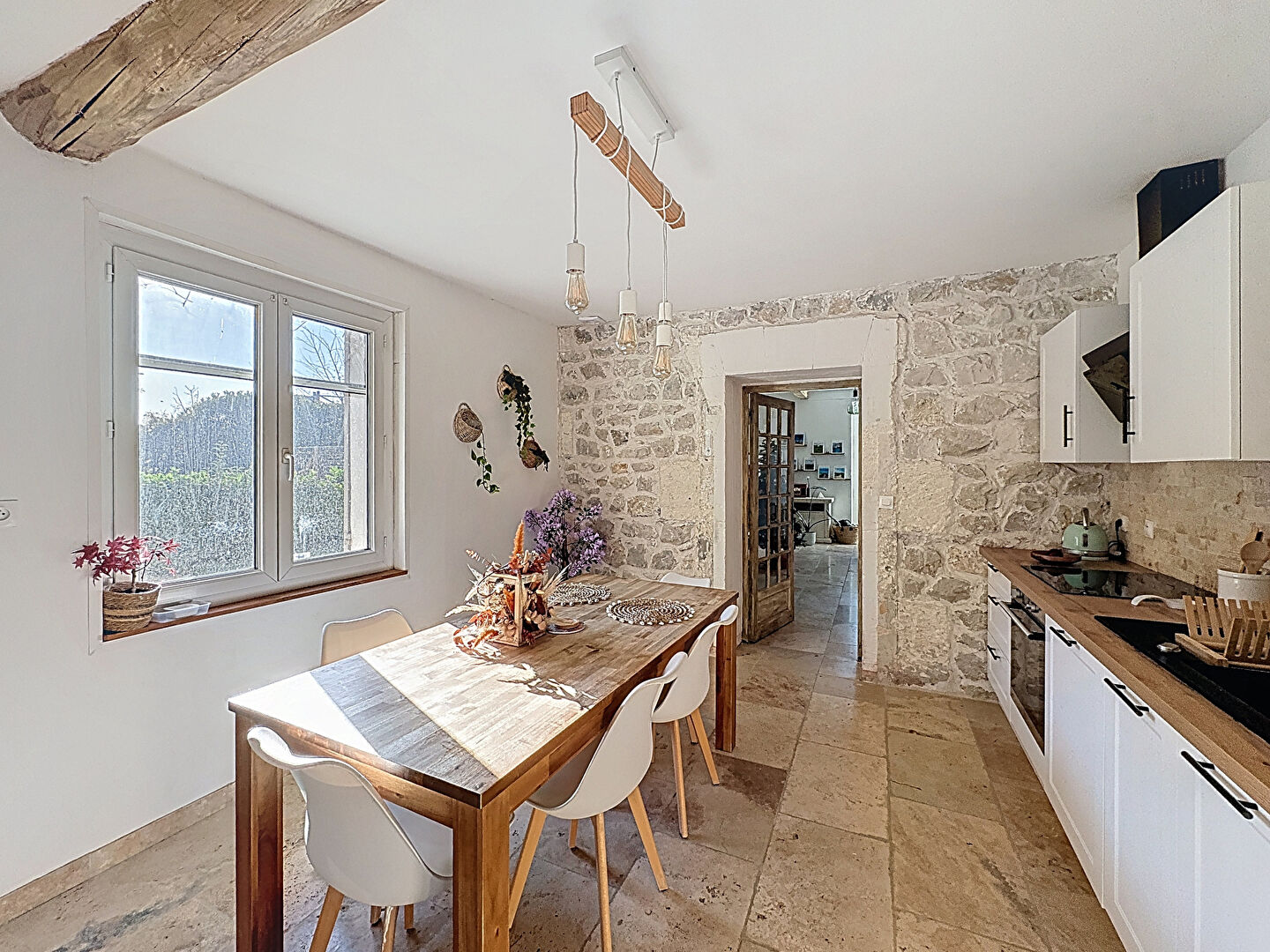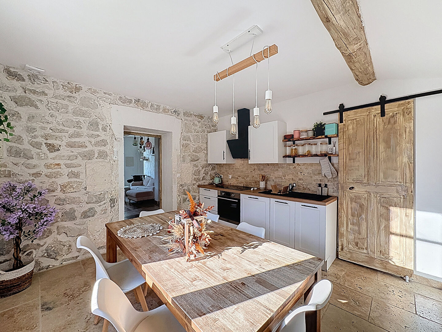 Nous vous proposons dans un authentique Mas Provençal divisé cette maison de 95 m² habitables, entièrement rénovée avec des matériaux de qualité il y a seulement 2 ans (2023). Ce bien est situé au sein d’une petite copropriété de caractère, alliant le prestige de l’ancien (pierres, poutres) et la modernité.