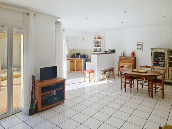 En fond d’impasse, proche de toutes les commodités, maison plain-pied récente de 60 m² comprenant une belle pièce à vivre de 43 m² environ avec cuisine ouverte sur séjour avec cheminée, chambre avec placards, salle d’eau avec toilettes plus une dépendance de 20 m² avec chambres, salle d’eau et toilettes, le tout sur une parcelle de 255 m² avec piscine.