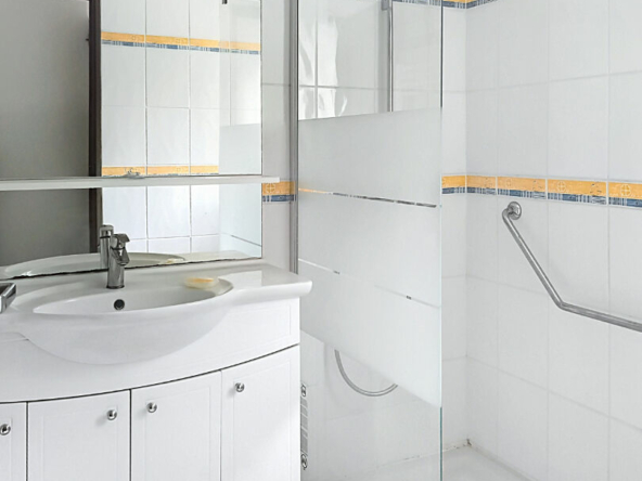 Elle se compose d’une entrée desservant un lumineux séjour exposé plein sud, d’une cuisine équipée avec arrière-cuisine, de trois chambres dont une avec un coin douche privatif, d’une salle d’eau et de WC séparés.