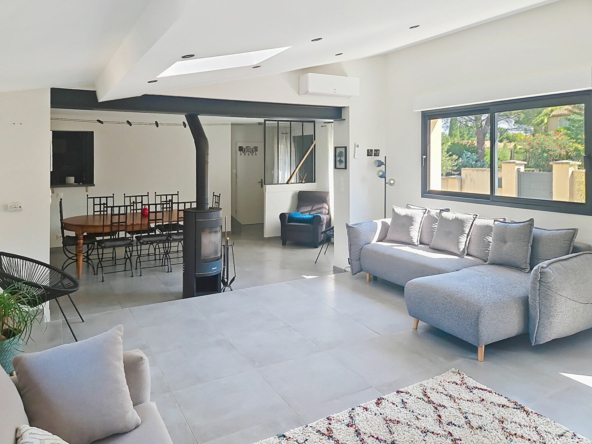 A proximité immédiate des commerces et des transports, maison des années 80 entièrement rénovée, elle offre 140 m² habitables plus un garage sur une parcelle de 397 m² avec piscine.