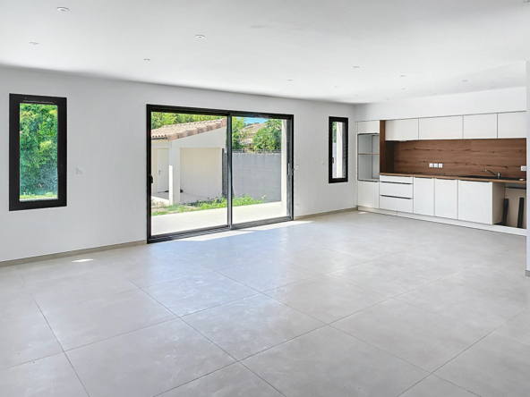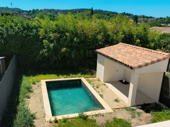 Maison neuve avec piscine, jardin et prestations de qualité, 104 m² habitables sur 301 m² de terrain.
