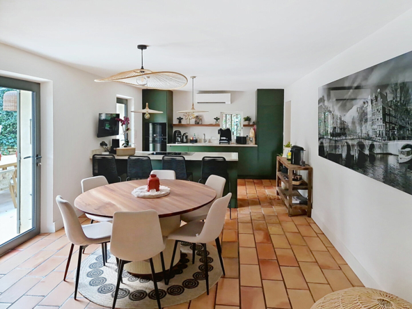 Imaginez vos matinées ensoleillées au bord de la piscine, avec une vue imprenable sur le Mont Ventoux, et vos soirées d’été dans le vaste séjour où chaque espace est pensé pour le confort et la convivialité.