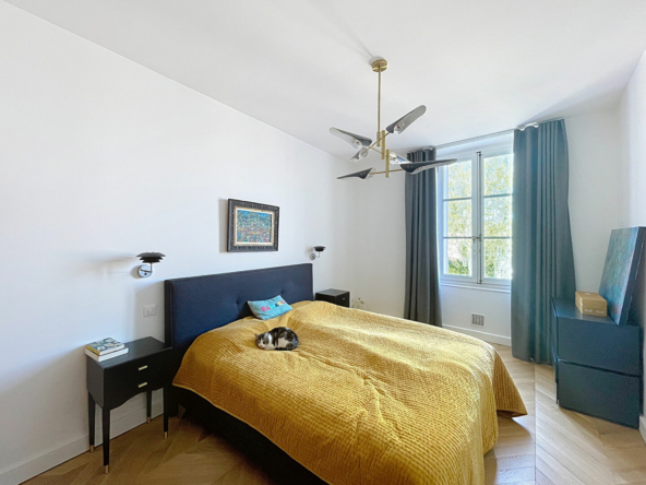 L’entrée de l’appartement conduit à ces deux espaces, la partie jour d’une surface de 40m² se compose d’une cuisine salle à manger lumineuse et conviviale avec une fenêtre en encorbellement (bow windows) et d’un séjour, spacieux et ensoleillé, équipé d’une cheminée fonctionnelle, bien agréable les soirées d’hiver.