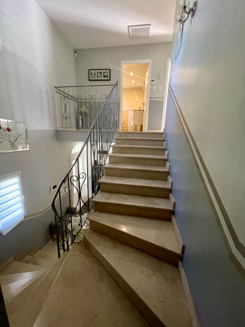 Côté confort et sécurité, les prestations sont au rendez-vous : chauffage au sol, fibre optique, alarme, porte blindée, volets roulants électriques, portail automatique. Un garage de 80 m² complète l’ensemble. Le forage et l’arrosage intégré facilitent l’entretien du jardin.