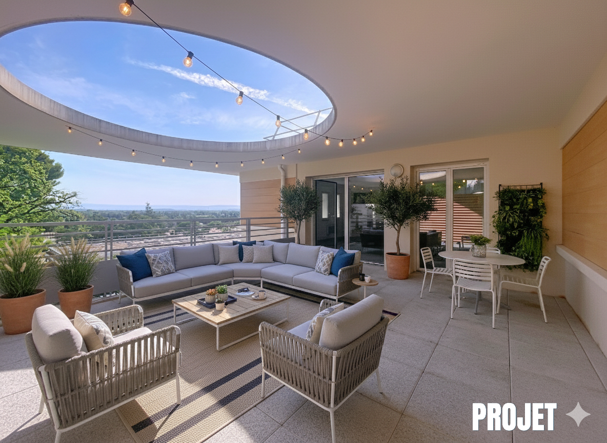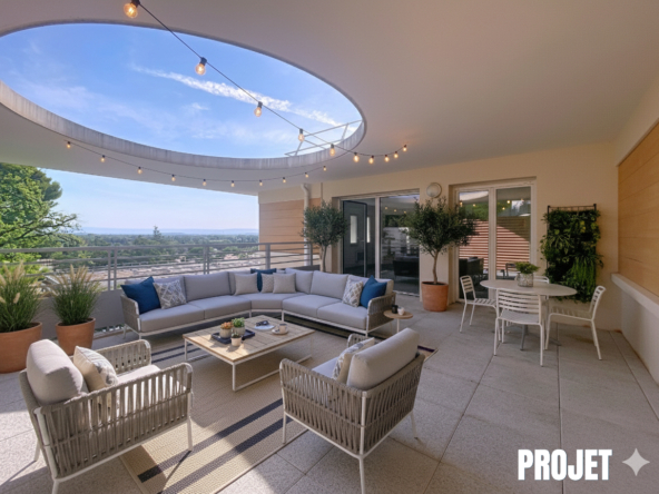 En exclusivité à Villeneuve les Avignon, proche du centre ville historique, dans une résidence fermée et sécurisée avec ascenseur – spacieux t4 en position dominante, disposant d’un séjour avec cuisine américaine ouverte sur une terrasse de 29 m 2 avec une vue dégagée sur le mont ventoux et le Fort saint André – deux chambres dont une suite parentale avec dressing et salle d’eau et terrasse de 12 m2 – salle de bains – bureau et deux box fermés en sous sol dont un double.